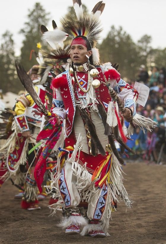Two North American Natives In Traditional Dress At A Graduation Pow Wow